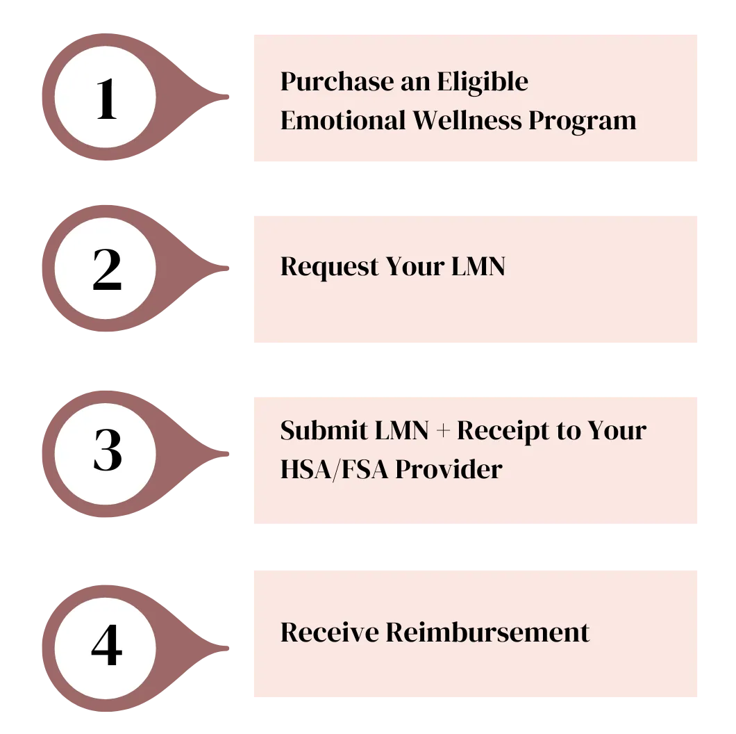 Yes — these emotional wellness tiers may be reimbursable when paired with a Letter of Medical Necessity (LMN). Coaching upgrades are not eligible.